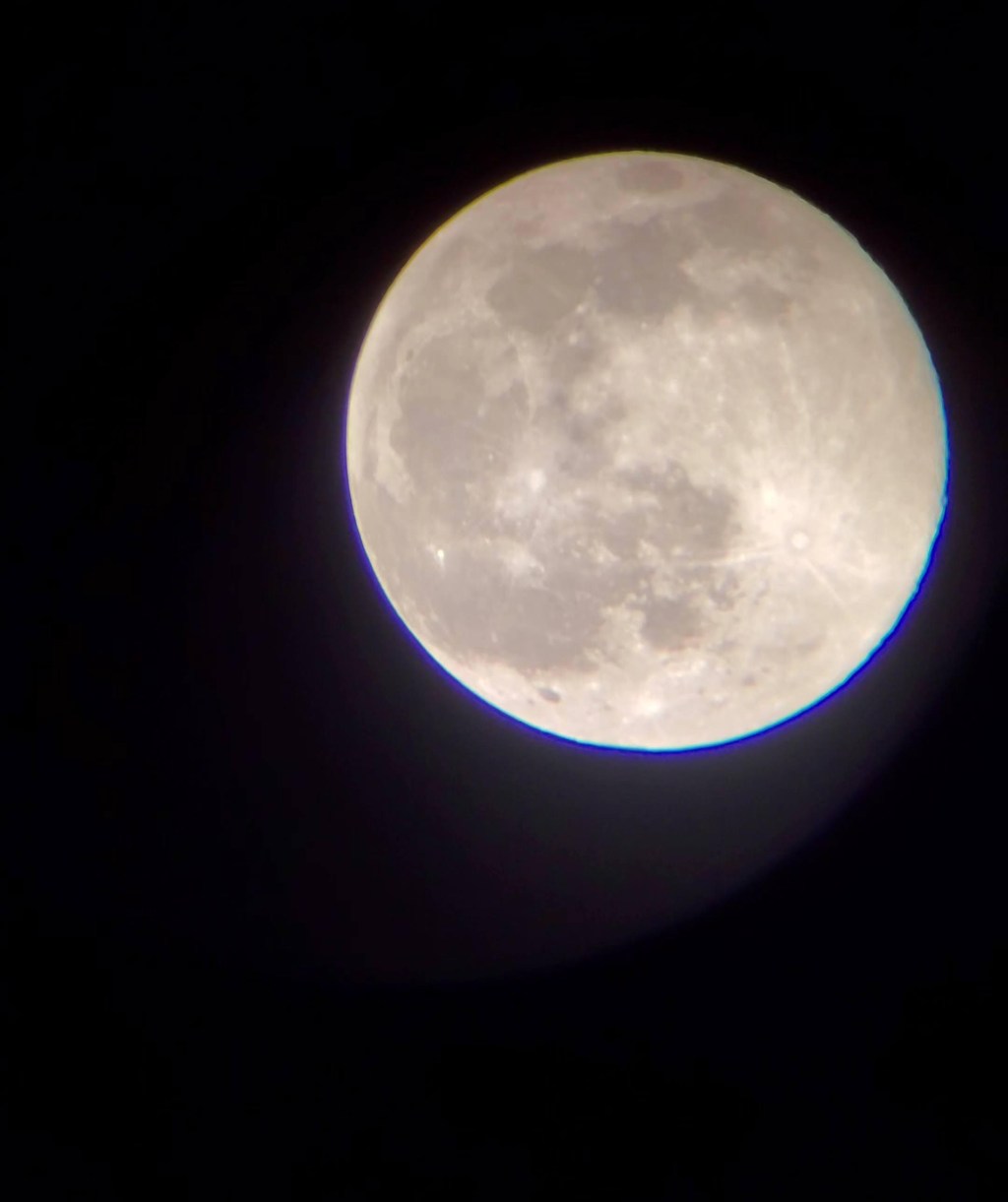 January 28, 2021: Full (Wolf) Moon – Captured using my son’s telescope