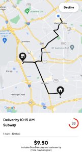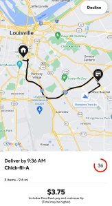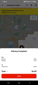 Just as I previously stated, here’s an example of driving to a destination out of my starting point. The app didn’t assign me any deliveries in the area I was currently in, which actually causes the customer to wait even longer for me to drive out to the location the customer placed the order. This causes a longer delay when there could have been a Dasher nearest the location to accept the order.